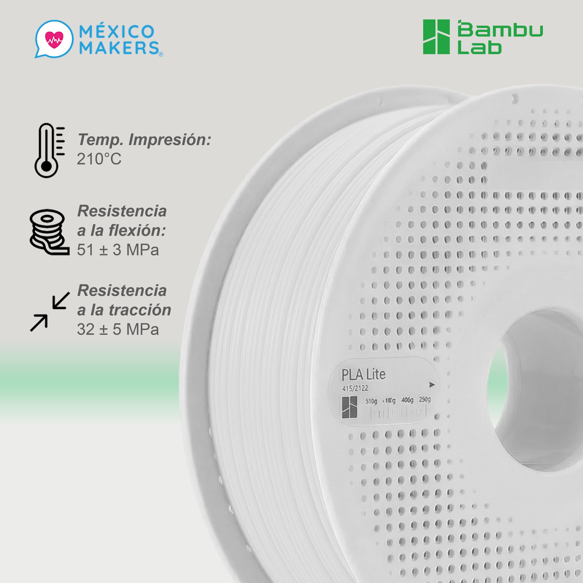 - 5xBambu PLA Lite BLANCO con bobina reutilizable